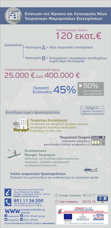 «Ενίσχυση της Ίδρυσης και Λειτουργίας Νέων Τουριστικών Μικρομεσαίων Επιχειρήσεων»