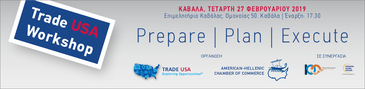 Το Επιμελητήριο Καβάλας, μέλος του Ευρωπαϊκού Δικτύου Στήριξης Μικρομεσαίων Επιχειρήσεων Enterprise Europe Network, σε συνεργασία με τον Ελληνο-Αμερικάνικο Επιμελητήριο διοργανώνει ενημερωτική εκδήλωση για τις εξαγωγές στις Ηνωμένες Πολιτείες. Στην εκδήλωση θα αναπτυχθούν τα παρακάτω θέματα