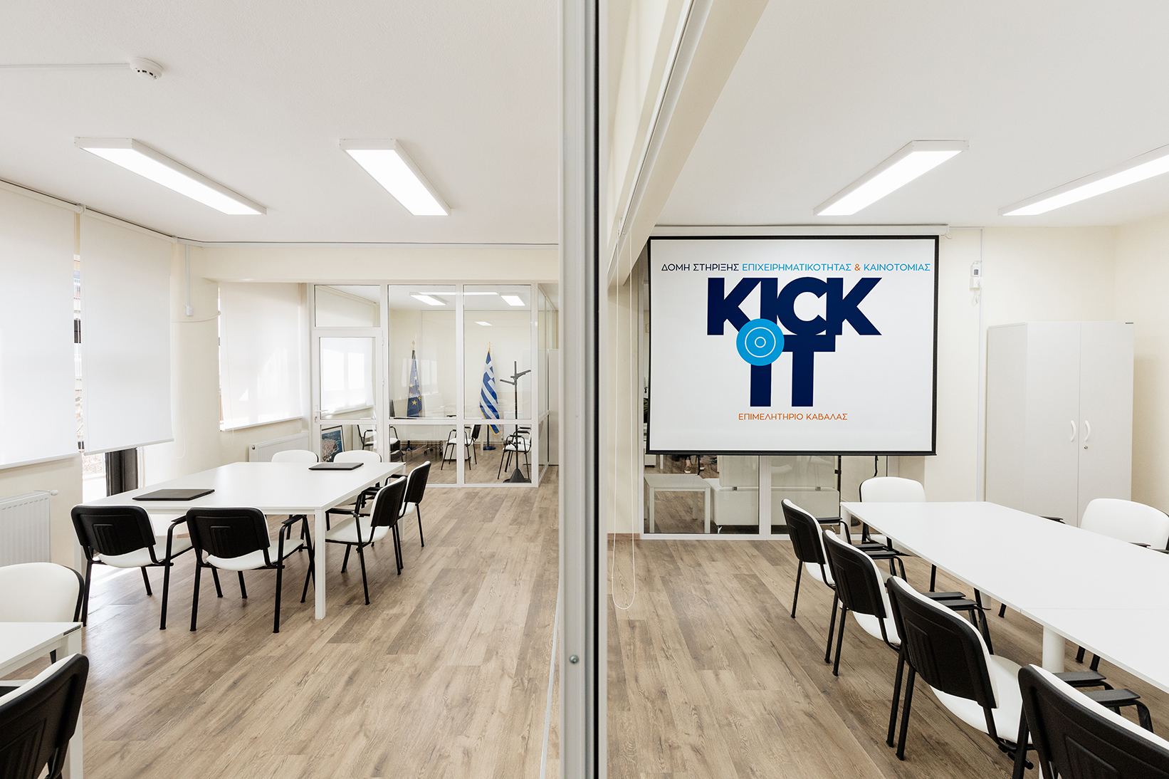 Η Δομή Kick-iT στεγάζεται στον τρίτο όροφο του κτηρίου επί της οδού Ομονοίας 117, σε έναν ιδιαίτερα μελετημένο και λειτουργικό χώρο, κάλυψης 105τ.μ., και είναι εξοπλισμένη με όλες τις απαραίτητες προδιαγραφές για την υποστήριξη των επιχειρηματικών ομάδων.