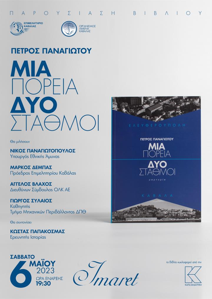 Το Επιμελητήριο Καβάλας σας προσκαλεί στην παρουσίαση βιβλίου του Πέτρου Παναγίωτου με τίτλο: Μια πορεία Δύο Σταθμοί,το Σάββατο 6 Μαΐου και ώρα 19:30 στο ΙΜΑΡΕΤ