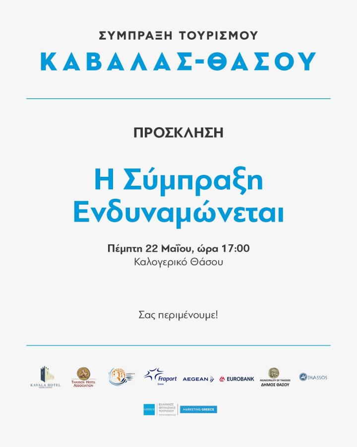 Η Σύμπραξη Τουρισμού Καβάλας – Θάσου σας προσκαλεί σε εκδήλωση για την παρουσίαση του έργου της & την ανακοίνωση της διεύρυνσής της: